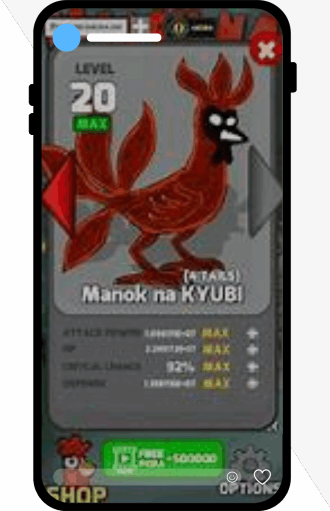 The mod version of Manok Na Pula offers players powerful upgrades like unlimited coins, dragon eyes, one-hit kill skills, unlock all chickens max level 1000, and even access to rare chickens like Manok Ni Kupido and Manok Na Hokage. Most of the players switch to the mod version for a smoother, ad-free, offline playing without annoying ads and more customizable experience without wasting hours or spending real money.